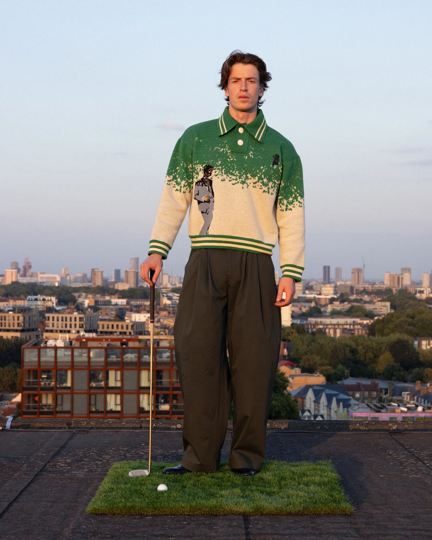 Laurier collection explores structure, leisure, and quiet confidence. Referencing classic sporting codes and collegiate detail, the collection refines familiar forms through texture, proportion, and subtle graphic language. Knits and crests feel considered rather than nostalgic, while relaxed silhouettes balance polish with ease.