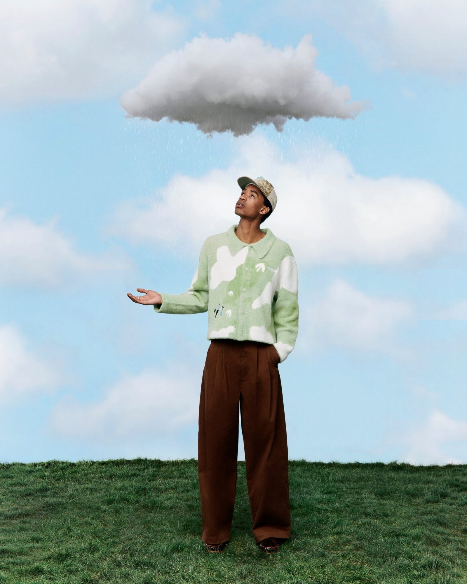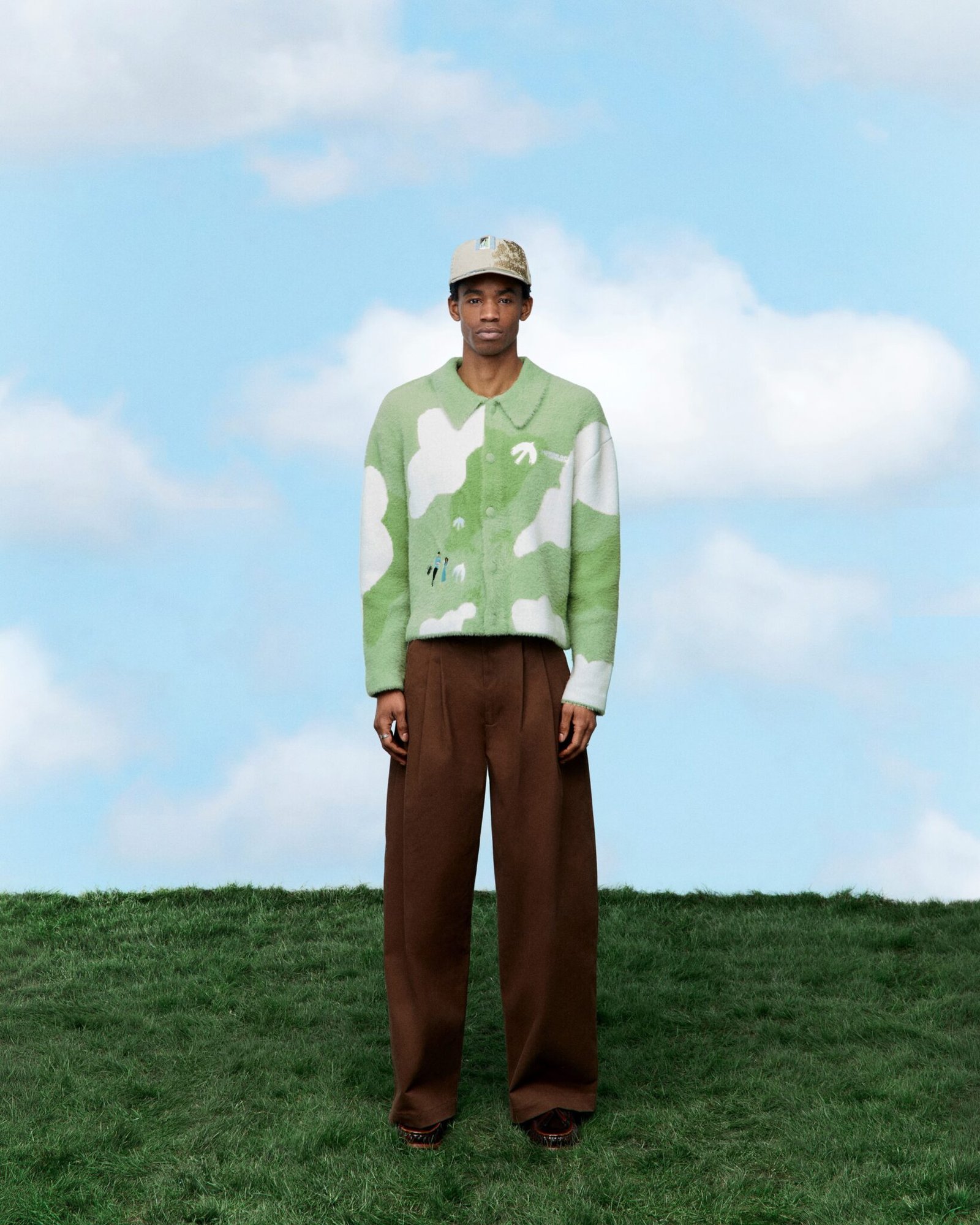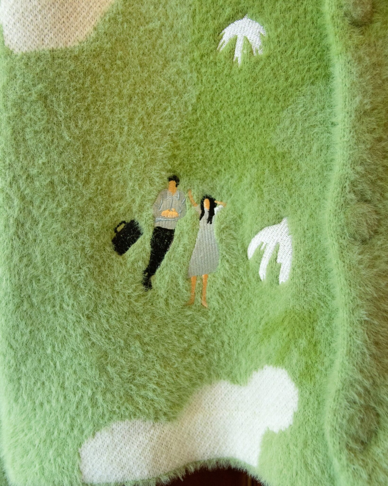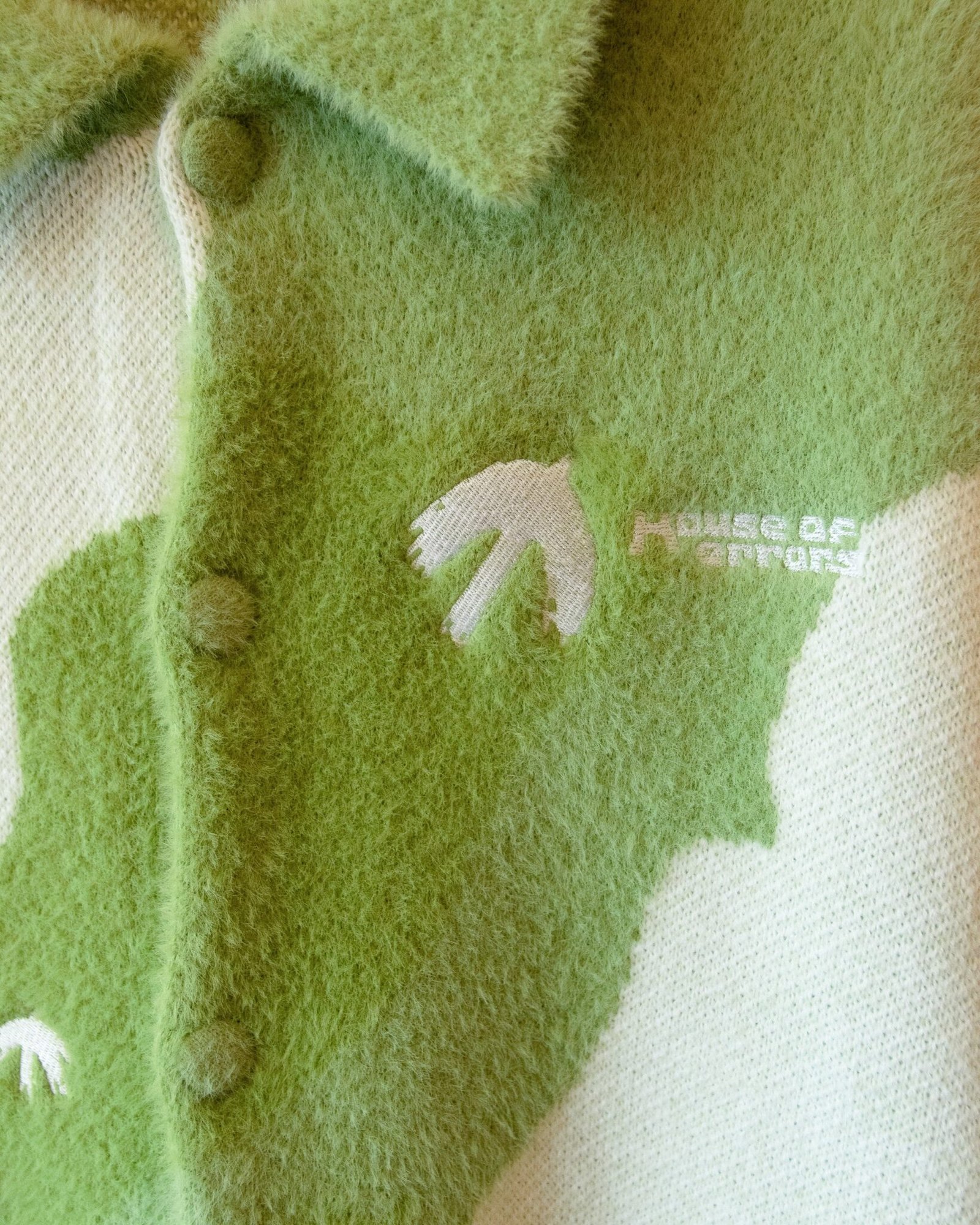 Knitted Cardigan From Shaggy Yarn Extra Soft Acrylic/Nylon Yarn Made For Comfort Knitted Buttons Birds Eye View Over The Fields Of Lauterbrunnen Embroidered Couple Look To The Clouds Embroidered Birds Fly Above Embroidered Errors Logo Hand Wash
